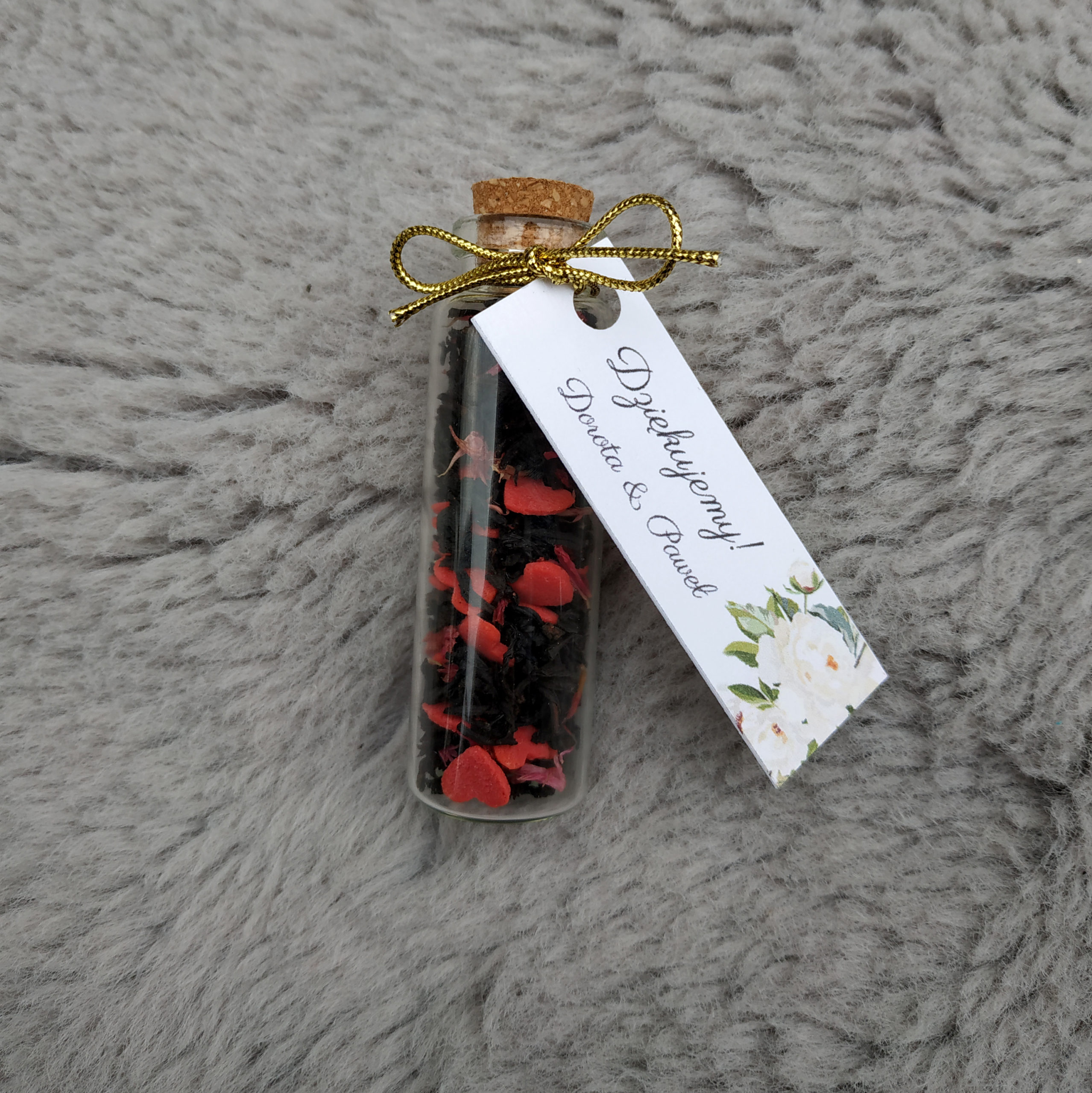 Aromatyczna herbata zamknięta w eleganckich, szklanych buteleczkach będzie idealnym upominkiem dla Waszych bliskich. Buteleczki ozdobione