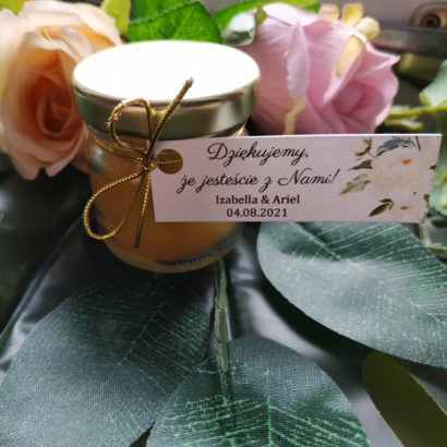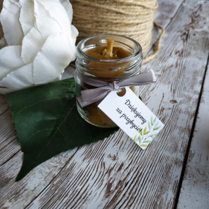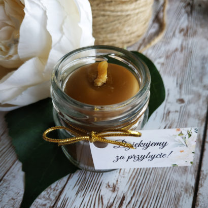 Ekologiczna naturalna świeca z wosku pszczelego. Świece z wosku pszczelego palą się wydzielając miodowo – woskowy zapach. Mini świeczki to wspaniały prezent dla Twoich gości, zapamiętają go na długo. Świetnie się sprawdzi na wesele a także inne uroczystości, np. komunia, chrzest lub roczek. Wszystkie świece są wykonane ręcznie, dlatego każda ze świec jest unikalna i niepodrabialna. Kolor świec może się różnić żółtego do brązu, jest to w pełni naturalne i tylko potwierdza ekologiczność i naturalność produktu. Świece wykonane są w 100% z wosku pszczelego.