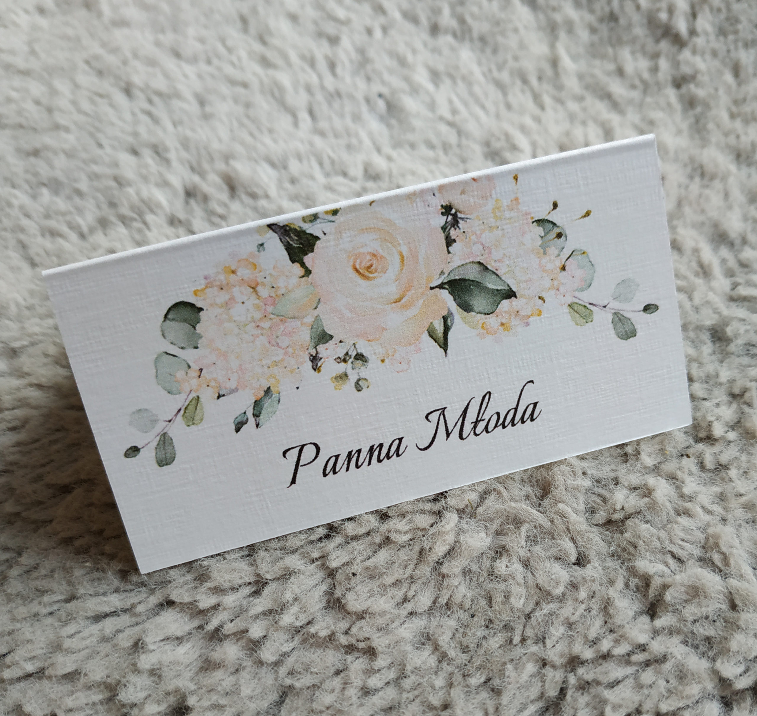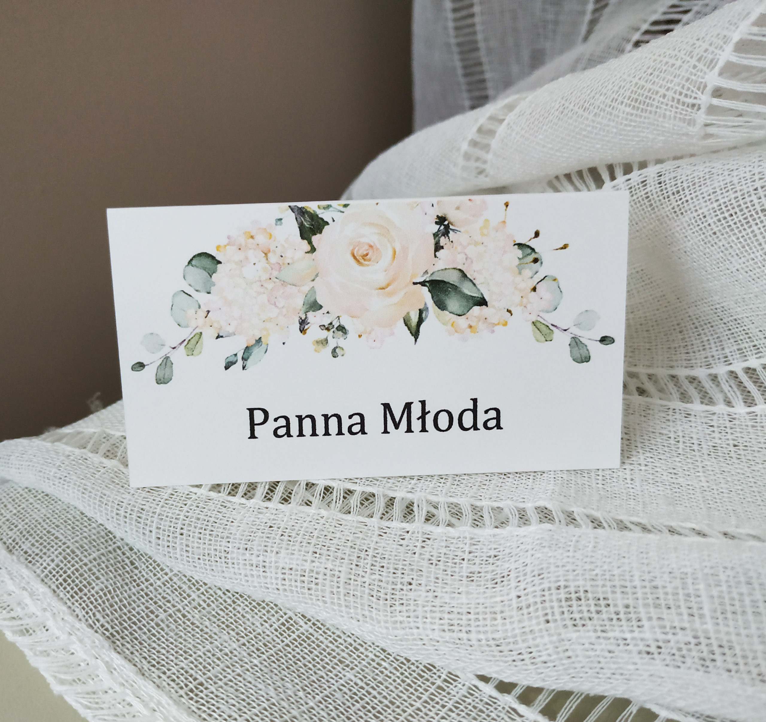 Subtelna winietka, wykonana z białego papieru o fakturze płótna. Idealnie pasuje do zaproszeń kolekcji Białe róże. Podana cena dotyczy 1 sztuki winietki.