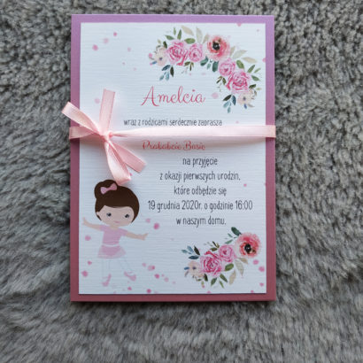 Zaproszenie z piękną małą baletnicą! Świetny pomysł na zaproszenie na ważną uroczystość dla Twojej córeczki!