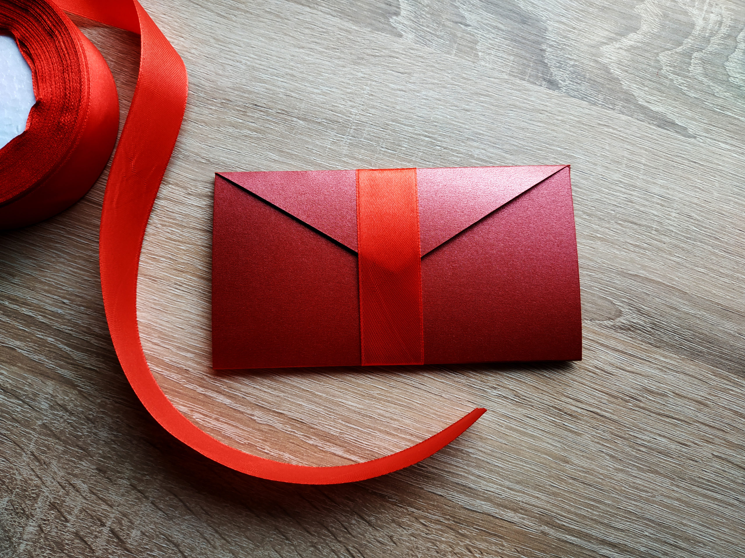 Eleganckie zaproszenie w formie koperty z jasno-czerwoną przepaską z satynowej wstążki. Idealne dla fanów czerwonych róż. Zachęcam także do zamówienia dodatków z tej kolekcji: zawieszek na alkohol, winietek, numerów stołów oraz etykietek na kołacz. Pięknie się wpasują w dekoracje kwiatowe dekoracje sali weselnej a także bukiet Panny Młodej z czerwonych róż. Podana cena dotyczy 1 sztuki zaproszenia.