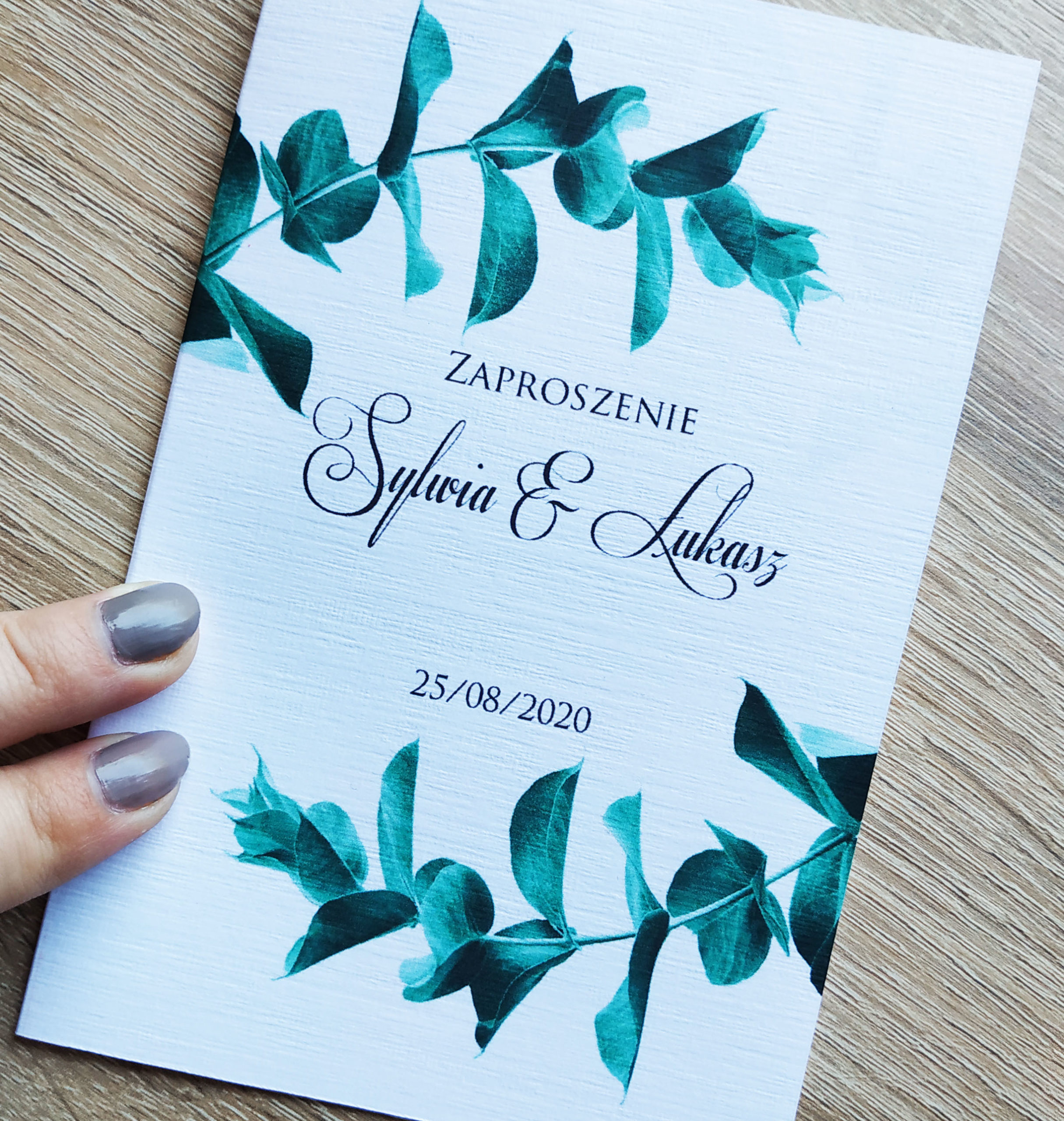 Minimalistyczne i oryginalne zaproszenie z modnym motywem liści eukaliptusa. Jest to coś idealnego dla fanów natury i prostoty.