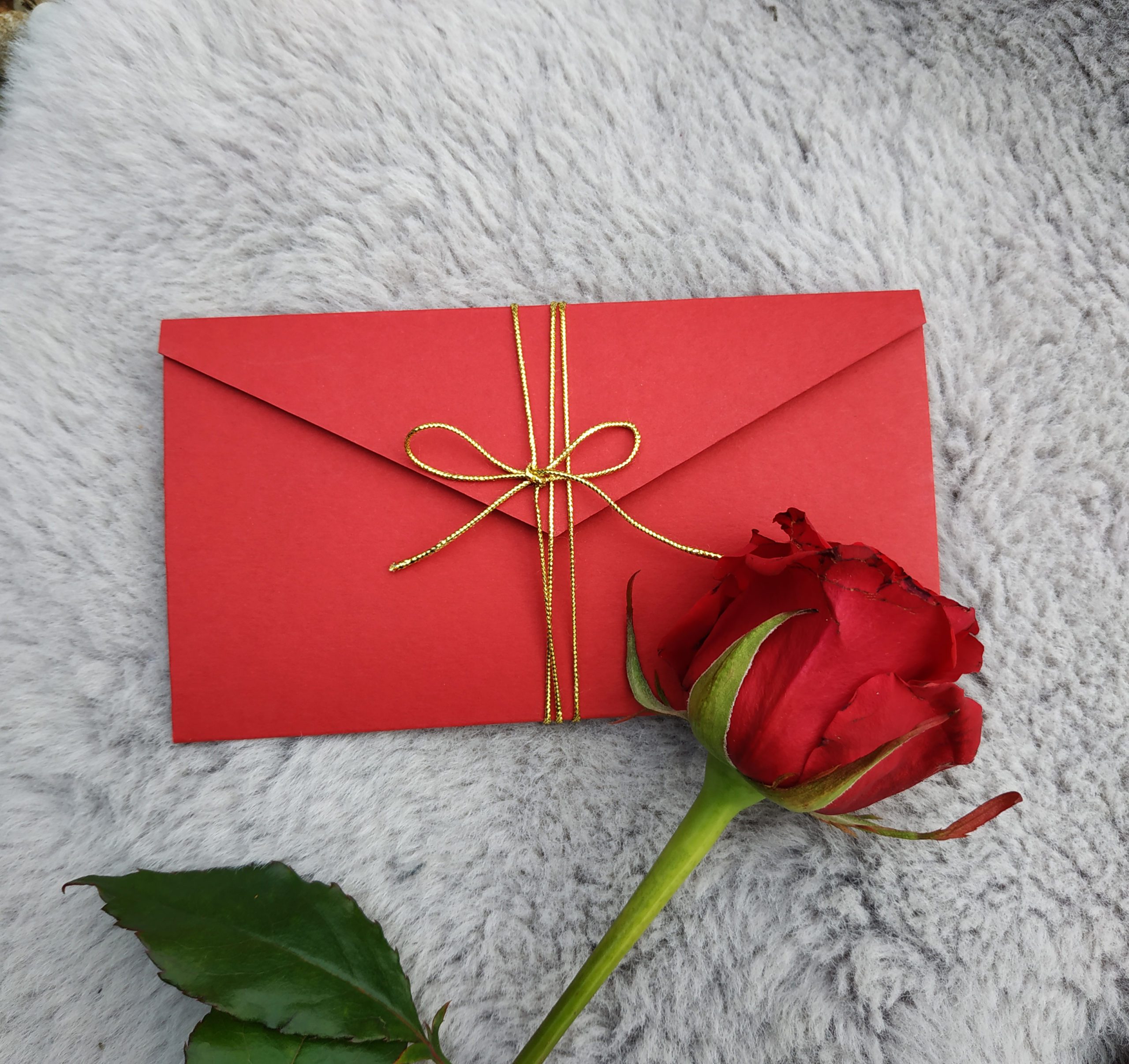 Cudowne zaproszenie z kwiatami róży, wykonane z papieru o fakturze płótna. Naklejone na podkładkę z twardego papieru w kolorze Guardsman Red (bordowy). Całość składana w kształt koperty, przewiązana złotym metalizowanym sznureczkiem. Bardzo eleganckie i pełne klasy. Zachwyci Twoich gości. Podana cena dotyczy 1 sztuki zaproszenia. (Na ostatnim zdjęciu przedstawiono faktyczny kolor papieru). Na zamówienie.
