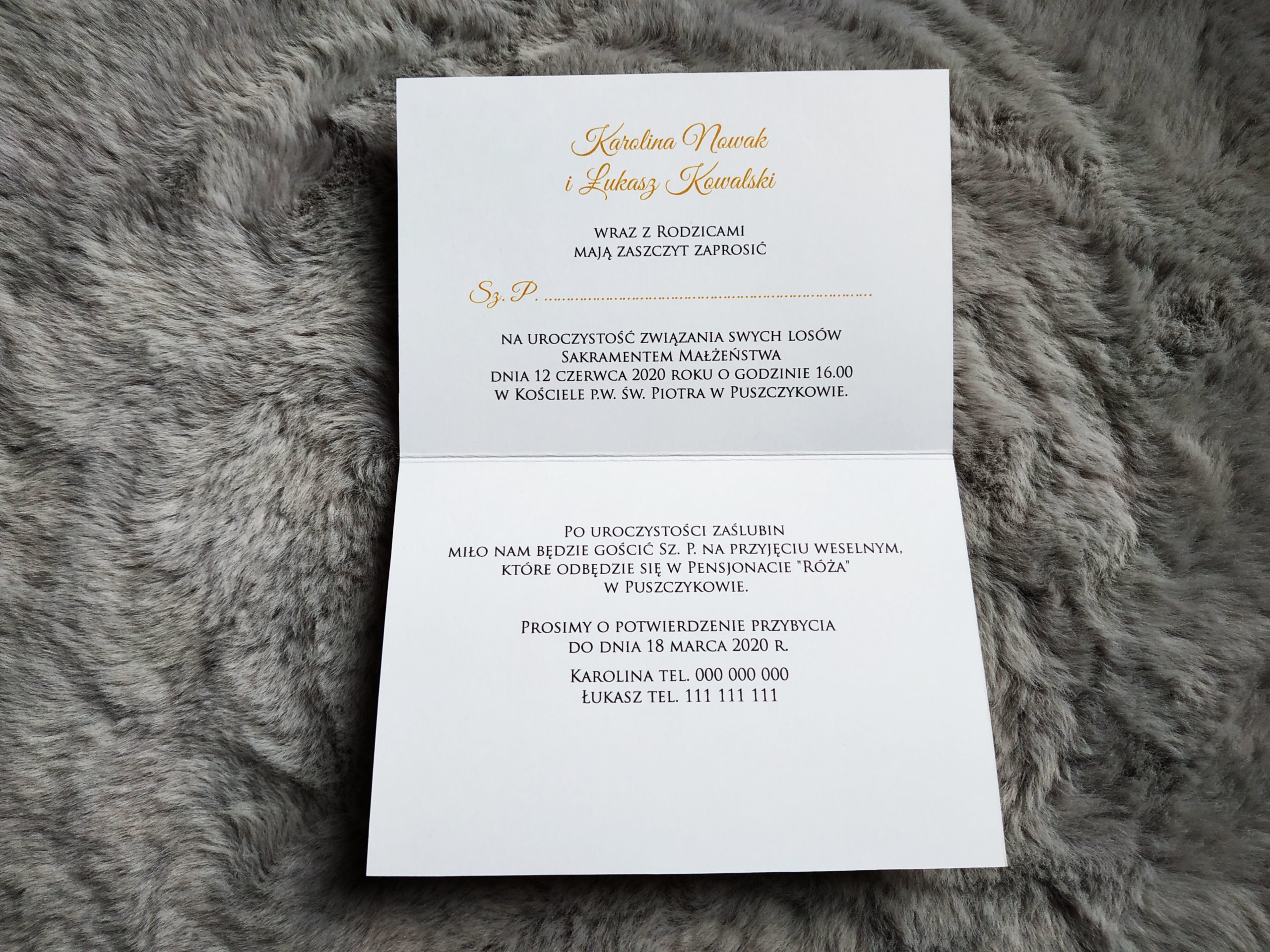 – treść wnętrza: własna lub wybrana z zakładki „Treści do zaproszeń”,
