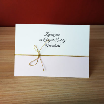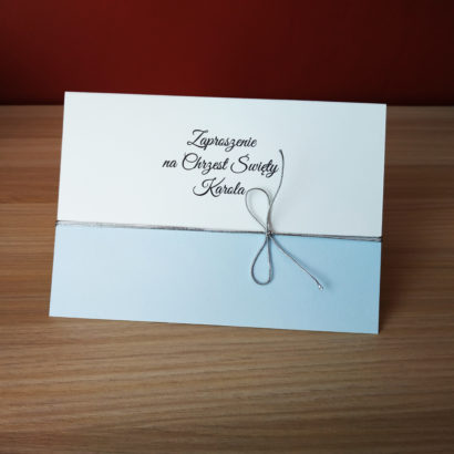 Pełne uroku zaproszenie w kolorze pastelowym niebieskim lub różowym, błyszczący złoty/srebrny sznureczek dodaje szyku i elegancji. Możliwość wyboru czcionki oraz zmiana tekstu we wnętrzu. Cena dotyczy 1 sztuki zaproszenia. Koperty sprzedawane osobno.