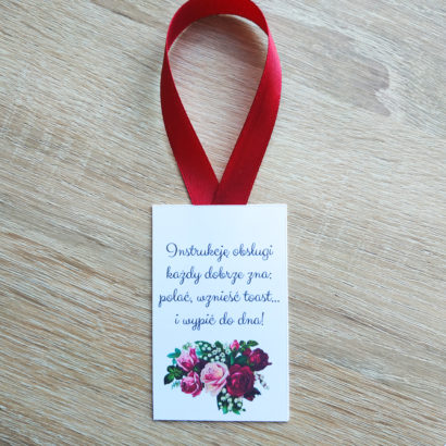 Przepiękna bordowa zawieszka z kolekcji Róże i konwalie. Świetnie się sprawdzi jako zawieszka na Twój alkohol.